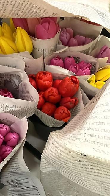 Тюльпаны в авторских композициях - Профессиональная флористика из свежесрезанных тюльпанов: однотонные и смешанные сочетания (малиново‑розовые, белые, жёлтые, красные и др.). - Форматы на выбор: ...