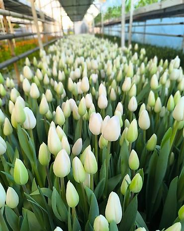 Тюльпаны с теплицы — свежесрезанные, длинный стебель, упругий бутон