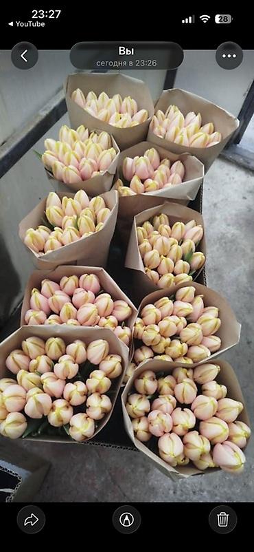 - Форматы: готовые монобукеты из 15–25+ тюльпанов (по фото видно варианты с плотной посадкой).