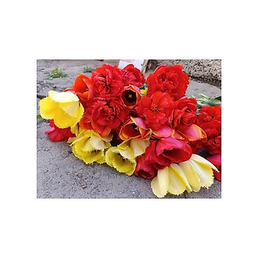 Тюльпаны с собственной теплицы. - Ассортимент: классические и махровые тюльпаны. - Окраски: нежно‑розовые с кремовым, ярко‑желтые махровые, бордовые/винные, насыщенно‑красные махровые. - Срез: дли...