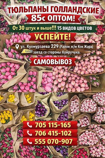 Тюльпаны Голландские от 85с ОПТОМ (Район ж/м Кок Жара) ул. Кулмурзаева 229 (2гис) заезд со стороны Куйручука. От 30 штук и выше !!!!! 20 цветов , бутоны большие От 50см и выше .Успейте ! Само...