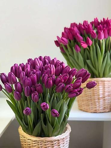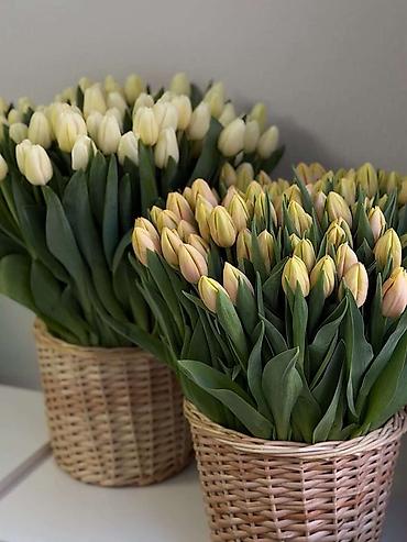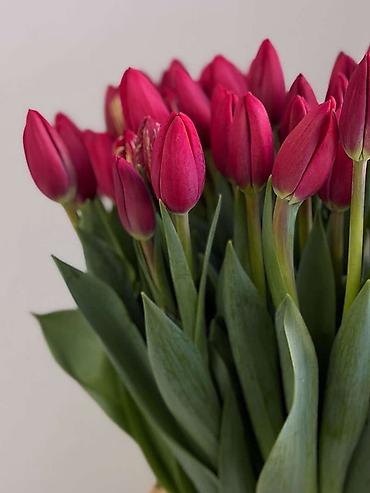- Срезные тюльпаны прямого выращивания: плотные бутоны, длинные упругие стебли, насыщенная зелень.