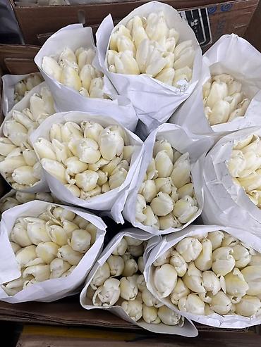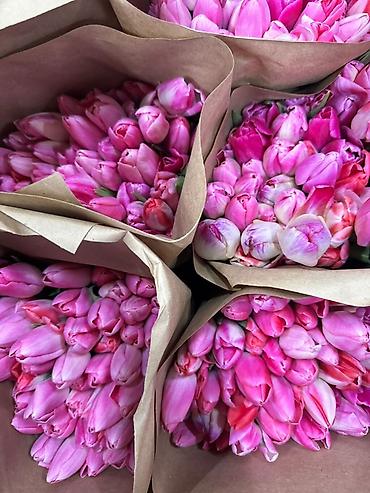 Тюльпаны срезанные — готовые букеты в крафт-упаковке. - В