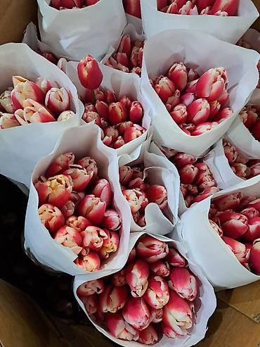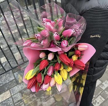 Тюльпаны в авторских композициях - Профессиональная флористика из свежесрезанных тюльпанов: однотонные и смешанные сочетания (малиново‑розовые, белые, жёлтые, красные и др.). - Форматы на выбор: ...