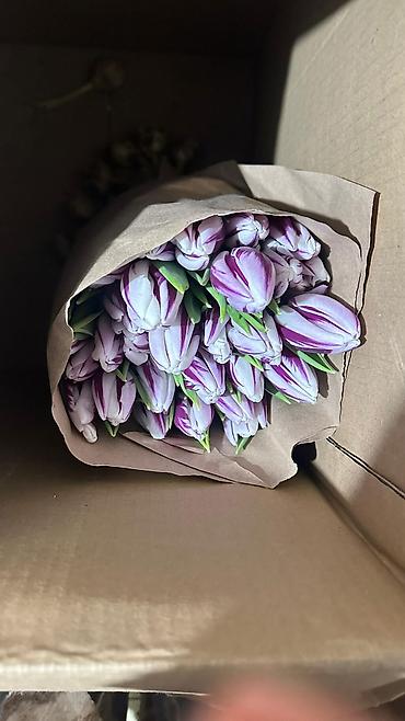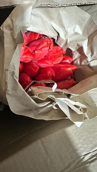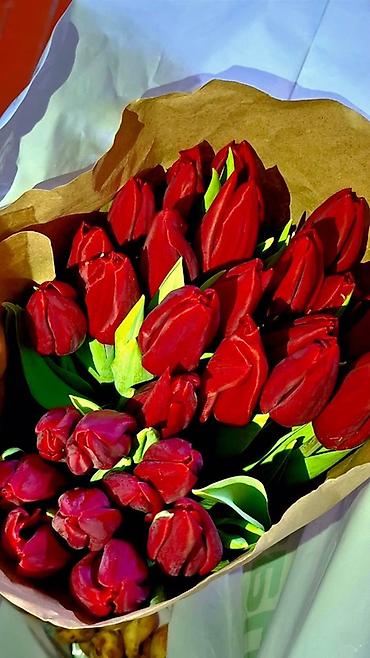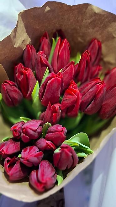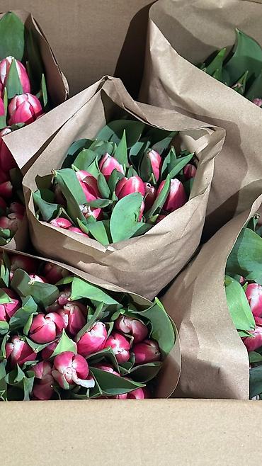 Тюльпаны срезанные, в крафт-упаковке.
