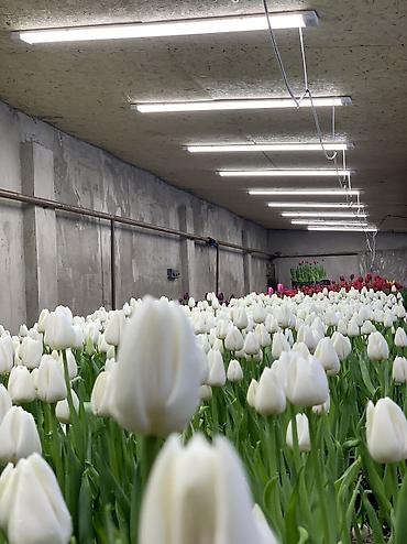 - Выращивание: тепличная выгонка под искусственным освещением для ровного стебля и одновременного цветения партии.