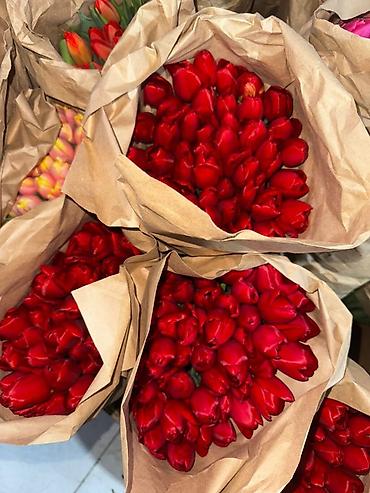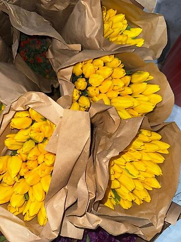 Тюльпаны свежесрезанные — плотные бутоны, длинные упругие стебли.