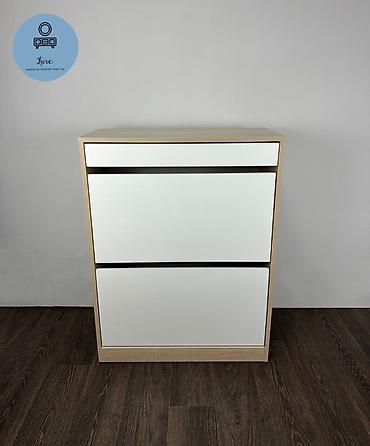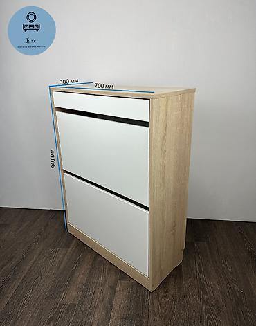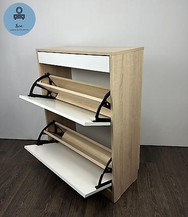 - Формат: компактная обувница с откидными секциями и верхним выдвижным ящиком.