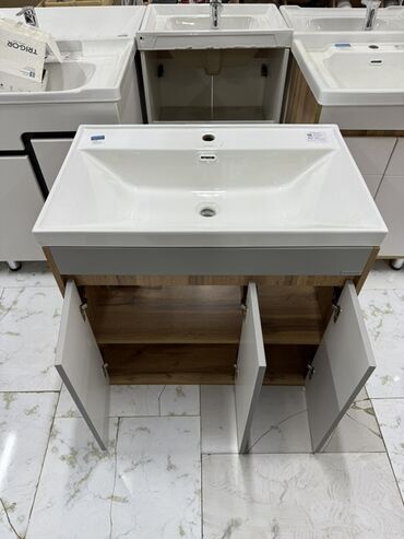 - Конструкция: аккуратная интеграция сифона в центральном отсеке; ровная столешница раковины для удобного размещения предметов.