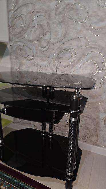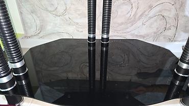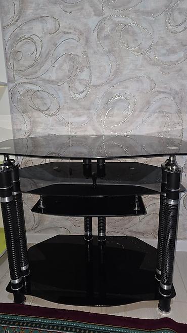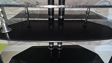 Тумба под телевизор/медиацентр из черного закаленного стекла.