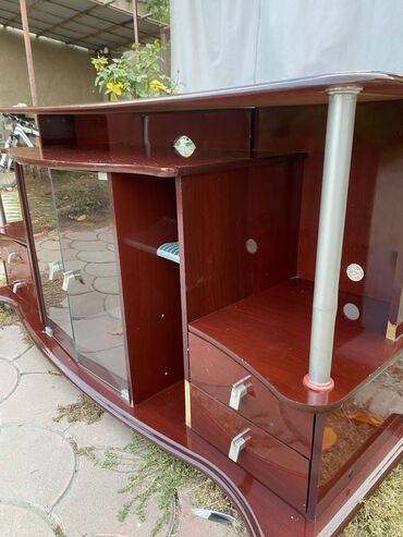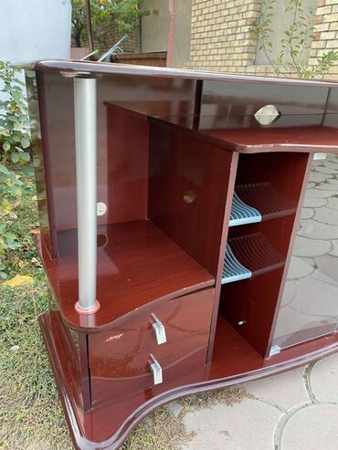 - Материал: МДФ/ДСП с глянцевым покрытием в цвете «тёмный махагон».