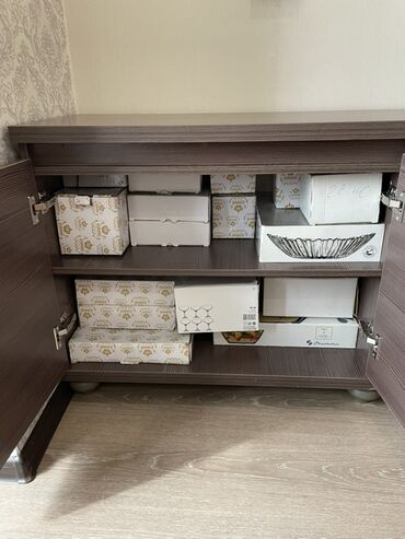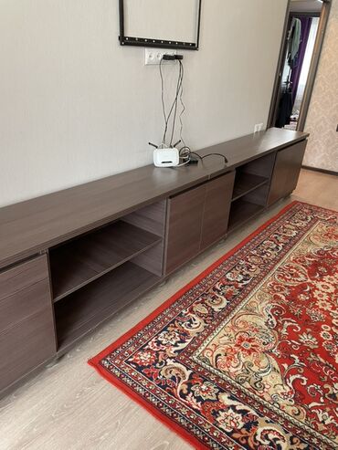 - Много места для хранения: в закрытых шкафах помещаются габаритные коробки, посуда, текстиль; в открытых нишах удобно размещать приставки, роутер, медиаплееры.