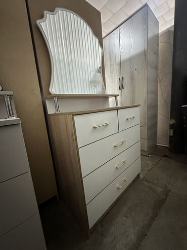 Шкаф с зеркалом 9000 сом Шкаф с четырьмя створками и двумя выдвижными ящиками. Выполнен в светлом древесном оттенке с темными ручками, что придает ему стильный и современный вид. В наличии различны...