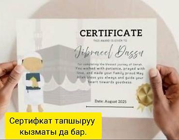 Умра сапары, умра малый хадж. Бардык кызматтар камтылган жана бардык даталарга рейстер бар, сертификат тапшыруу кызматы да бар.