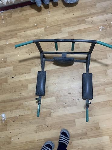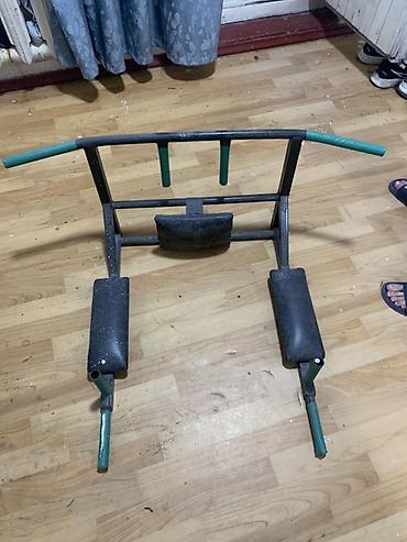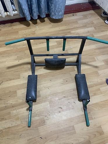 - Комбинированный тренажер для дома: подтягивания, отжимания на брусьях и подъемы ног/коленей на пресс.