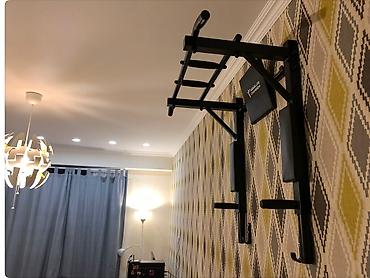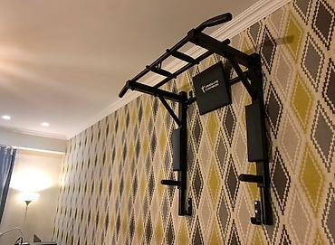 Настенный турник белого цвета с мягкими ручками и подкладкой для комфортного выполнения упражнений. Подходит для тренировок дома, позволяет выполнять подтягивания и другие упражнения для развития мышц верхней части тела. Конструкция крепится к стене, что экономит место в помещении.