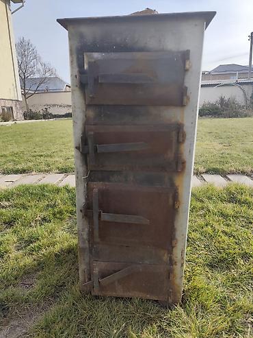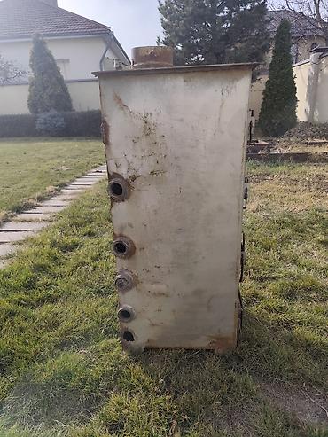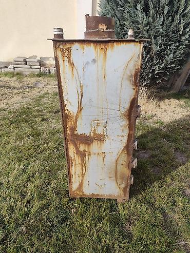 Твердотопливный водогрейный котёл (самодельный, стальной) Описание: - Вертикальная конструкция с тремя дверцами спереди: верхняя — загрузочная/чистка теплообменника, средняя — топочная камера, ниж...