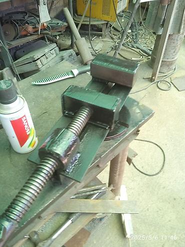 Тиски слесарные, 2 модели. 1) Тиски №1 - Прямолинейный ход подвижной губки. - Стальные сменные губки с насечкой. - Ширина губок примерно 120–140 мм (по фото). - Ручка-гайка для зажима, винтовой ме...
