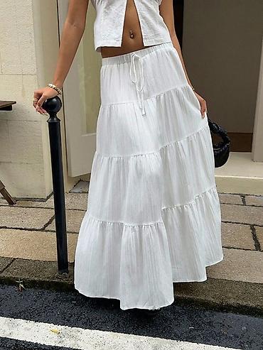 Белая длинная юбка-макси в стиле бохо