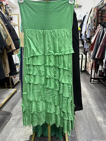 - Модель: длинная юбка с ярусами и рваными краями воланов