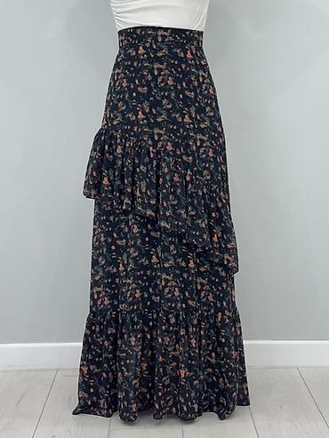 - Материал: лёгкая струящаяся ткань, держит форму воланов и красиво драпируется