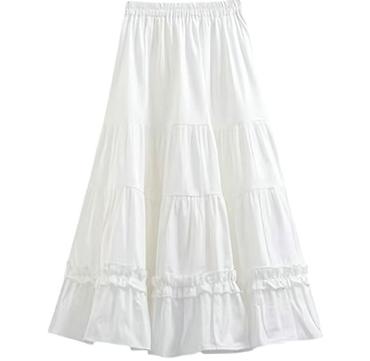 Юбка макси белого цвета с ярусами. - Фасон: длинная расклешённая юбка с множественными ярусами и легкой сборкой, создает воздушный объем. - Пояс: эластичная резинка по талии для комфортной посадки...