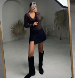Стильная мягкая кожаная юбка чёрного цвета – это шикарный элемент для