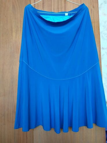 1. Трикотиновая синяя на подкладе . пояс--98 см, длина--82 см. Ниже икры. цена 200 сом.