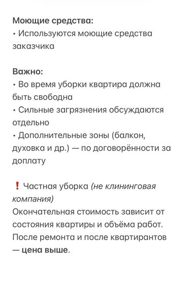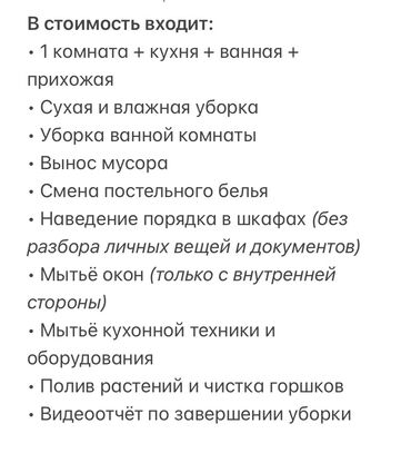 Уборка квартир и домов в городе Бишкек работаем 24/7 Генеральная уборка Поддерживающая уборка Мытьё окон Глажка белье Мытьё бытовой техники