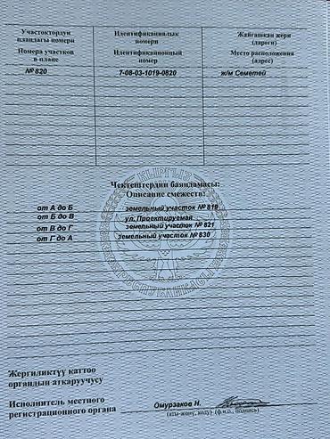 Земельный участок Семетей , район аэропорт Манас с госактом (КР). Категория: частная собственность. На руках Государственный акт о праве частной собственности на земельный участок. Характеристики:...