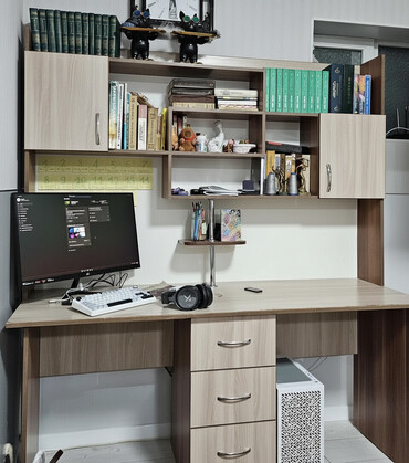 Деревянные стеллажи/шкафы для хранения (2 предмета) 1) Низкий модульный шкаф-стеллаж: - Материал: ДСП/фанера, задняя стенка ХДФ. - Компоновка: слева секция с дверцей и полкой; справа и по центру —...Вход•Регистрация