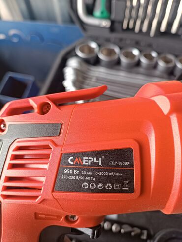 Ударная дрель СМЕРЧ СДУ-9503Р красного цвета, предназначенная для