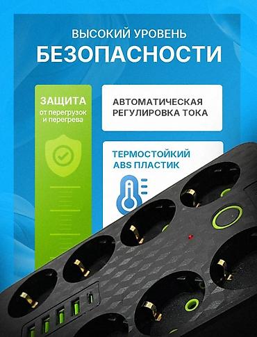 🔌Сетевой фильтр - включает в себя 4 порта USB-A, 1 USB Туре-С, плюс 8 розеток под стандартные электрические вилки на 220 В, имеет привлекательный внешний вид и компактный корпус.