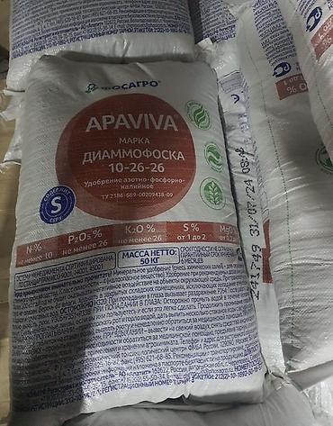 Жер семирткичтер. Минеральные удобрения в мешках по 50 кг 1) Аммофос (азотно-фосфорное удобрение) - Маркировка: N – 10±1%, P2O5 – ≥46% 2) Калий хлористый «Уралкалий». 3) Диаммофоска APAVIVA (ФосА...