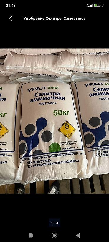 Комплексные минеральные удобрения в мешках по 50 кг: 1) Суперфосфат гранулированный - P2O5 — 15% (±1%), K2O — 2% - Масса: 50±1 кг - Произведено в Казахстане 2) Селитра аммиачная, марка Б, сорт вы...