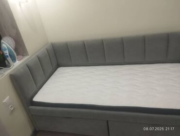 Угловая кровать с мягким изголовьем станет функциональным решением для организации спального места в небольших помещениях. Высокое изголовье с вертикальной стежкой не только добавляет эстетики, но и служит удобной опорой. Кровать идеально впишется в угол комнаты, освобождая пространство для других элементов интерьера.