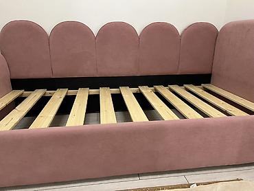 - Конфигурация: односпальная тахта с высоким мягким изголовьем/спинкой, угол левый. - Посадочное/спальное место: прямоугольное, рассчитано на одного взрослого. - Обивка: велюр/микровелюр в со...