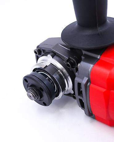 - Посадка диска стандартная, шпиндель с резьбой под прижимную гайку; совместима с кругами популярного диаметра (на фото — компактный корпус под 115/125 мм).