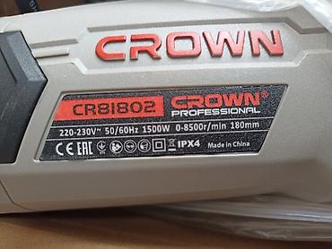 180ММ. БОЛГАРКА.по. Угловая шлифовальная машина Crown CR81802 с мощностью 1500 Вт и максимальной скоростью вращения 8500 об/мин. Инструмент оснащен дополнительной рукояткой для удобства работы и защитным кожухом для обеспечения безопасности. В комплекте также идет ключ для смены дисков. Подходит для шлифовки и резки различных материалов..