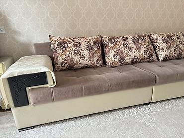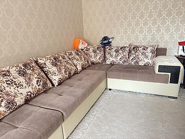 - Подушки спинки: съемные, крупного формата, с декоративным цветочным принтом в коричнево-бежевой гамме.