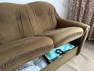 Угловой диван с высокой спинкой и глубокими посадочными местами. А также глубокими ящиками для хранения по всему периметру дивана. Очень помогает и экономит пространство. Б/у но все целое. Сделано ...