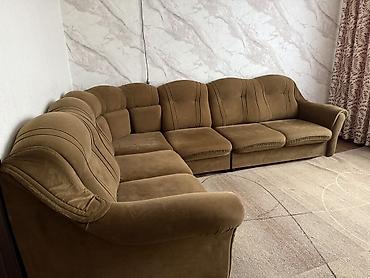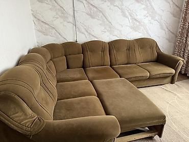 Угловой диван с оттоманкой Б/у - Конфигурация: угловая, правая оттоманка. - Посадочные места: 4–5 человек. - Комплектация: три большие спинки-подушки, широкое сиденье, оттоманка для отдыха ног. -...
