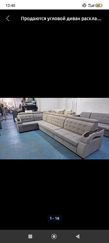 Угловой модульный диван с раскладным механизмом и стол стул 6шт - Конфигурация: П-образный/угловой диван с длинным правым крылом (по фото), состоит из нескольких секций. - Механизм: раскладная сек...30 000 KGS