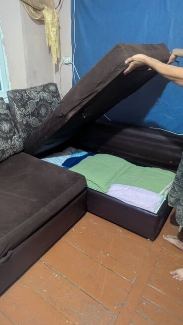 Ош шаары дареги. Угловой модульный диван в насыщенном бирюзово‑синем цвете.- 40000 сом. - Раскладной механизм: центральная секция выдвигается, образуя полноценное спальное место. - Высокие мягкие...