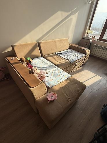 Мы пользовались год почти новая 🔥 Срочно Угловой раскладной диван с оттоманкой - Конфигурация: левый угол (оттоманка слева), широкие подлокотники с накладками под дерево/эко-кожу темного цвета. -...