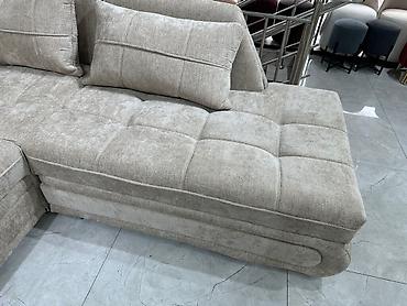 Угловой диван нейтрального бежевого цвета, обтянутый бархатистой тканью. Эта модель состоит из нескольких секций, включая оттоманку, что позволяет удобно разместиться нескольким людям. Подушки спинки обеспечивают дополнительный комфорт. Диван оснащен выдвижным ящиком для хранения, что делает его функциональным решением для гостиной, обеспечивая порядок и экономя пространство. Поверхность сидений украшена декоративной прострочкой, добавляющей изысканности. Идеально подходит для создания уютной зоны отдыха в современном интерьере.