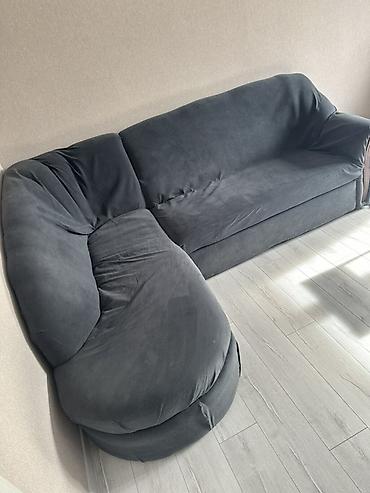 Угловой диван с оттоманкой Б/у - Конфигурация: угловая, правая оттоманка. - Посадочные места: 4–5 человек. - Комплектация: три большие спинки-подушки, широкое сиденье, оттоманка для отдыха ног. -...