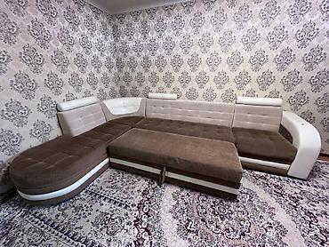 ПРОДАЕТСЯ УГЛОВОЙ/РАСКЛАДНОЙ ДИВАН 5500 СОМ Угловой/Раскладной диван-кровать с оттоманкой и бельевым ящиком, двухместный, можно использовать как спальня ну и как офисный...