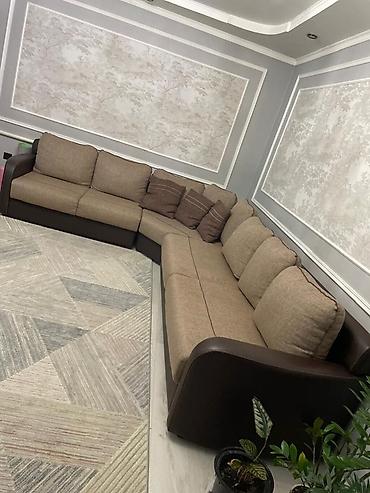 - Подушки: 6 крупных спинок + несколько декоративных подушек в контрастном тёмном тоне.