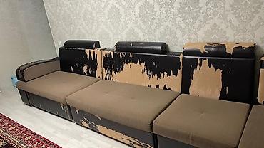 - На фото показаны как вариант с накидками, так и реальное состояние обивки экокожи без чехлов. Необходима перешивка.